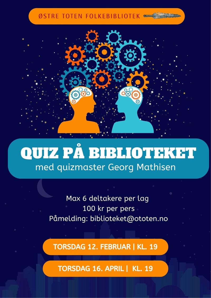 Georg Mathisen er fortsatt vår kunnskapsrike, trofaste og underholdende quizmaster! Dette er en quiz med behagelig vanskelighetsgrad, der det viktigste ikke er å vinne, men å ha det moro underveis.